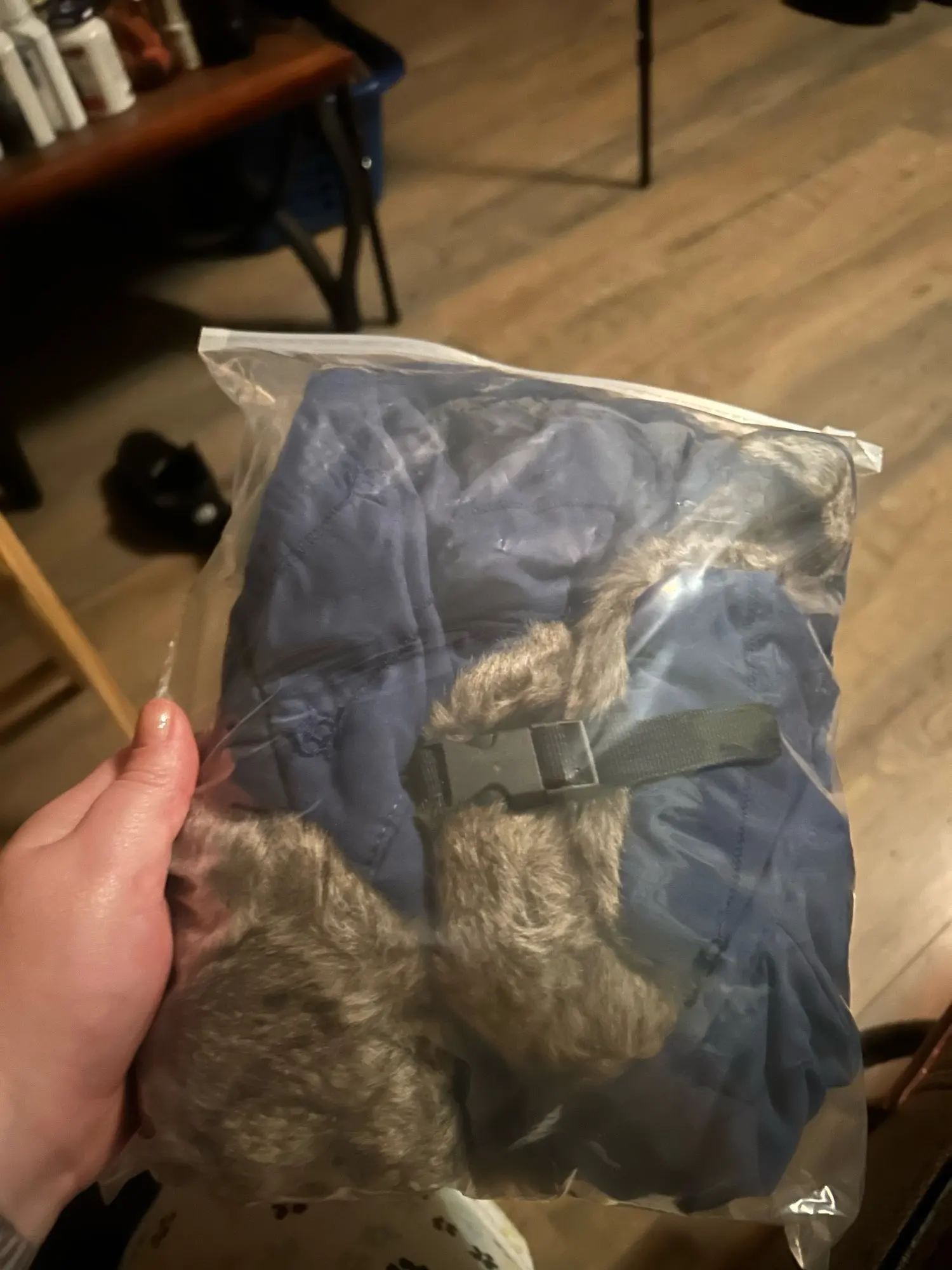 • Material: Polyester outer shell + faux-fur inner lining